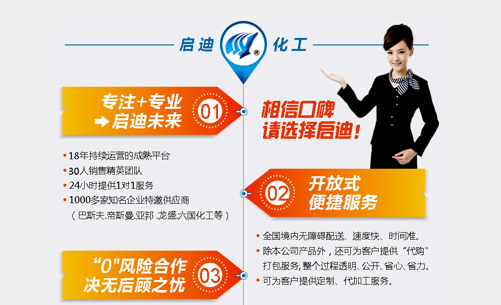 常州市啟迪化工有限公司是一家研發,制造,商貿的綜合化工平臺,下設昆山,武進辦事 處。公司成立于2003年,經過10多年的發展,進入了快速成長期。 公司設有內貿部、外貿部, 服務于中國市場和海外市場。主營:有機化工、無機化工、中間體、精細化工等(詳見官方網 站或經營目錄表)。產品涵蓋醫藥、農藥、農業、石油、水處理、建材、土壤修復、環保等行業。