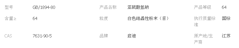 亞硫酸氫鈉的產品標準(GB/1894-80)